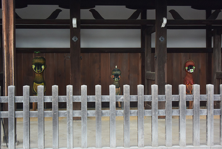 右奥、重要文化財「西門」では加藤泉さんの新作インスタレーションが展示されていました。
